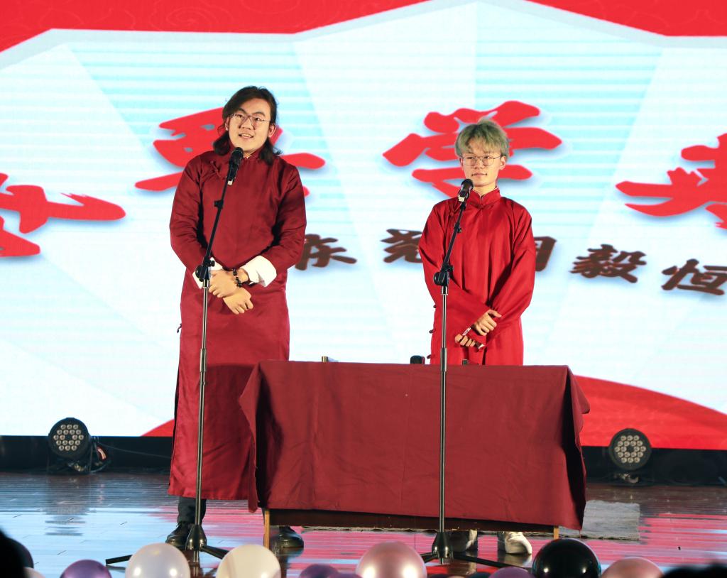 陈庆尧、周毅恒的相声《我要学英语》诙谐幽默,引得台下观众捧腹大笑。