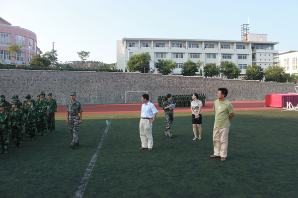 8月31日16:30,传播与动漫公司党总支书记张鸣,常务副经理阎瑜,党总支副书记兼副经理魏琳,分团委书记刘名森一行来到训练场走访2011级新生军营,对在烈日下坚持刻苦训练的新生表示慰问和鼓励。
