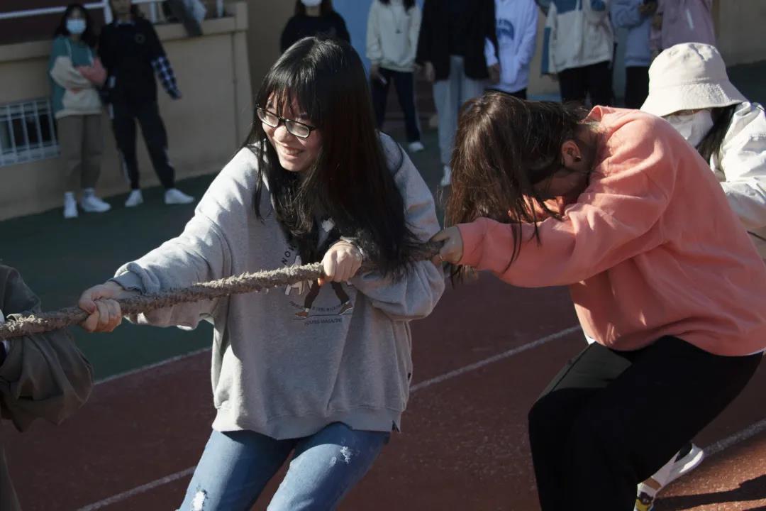 接下来是大二同学的比赛,赛场气氛紧张又热烈,一根绳子将同学们紧紧地联系在一起,大家都朝着同一个目标努力。经过同学们的不懈拼搏,编辑、汉学联队和广告202班进入决赛。