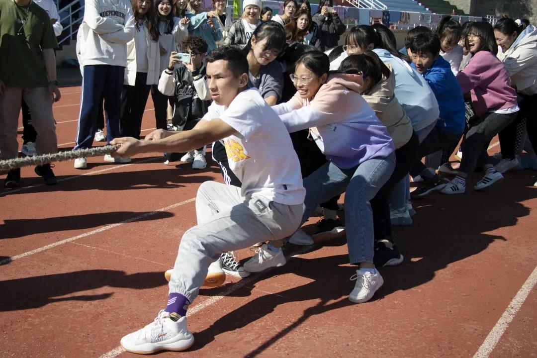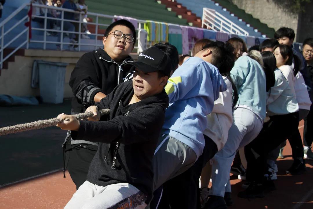 最后一“战”中,两边同学都全神贯注,降低重心,仔细注意哨声。一声令下,号子声、呐喊声、欢呼声此起彼伏,将整个比赛推上高潮。在热烈的掌声中,动画(中英)专业联队获得冠军。