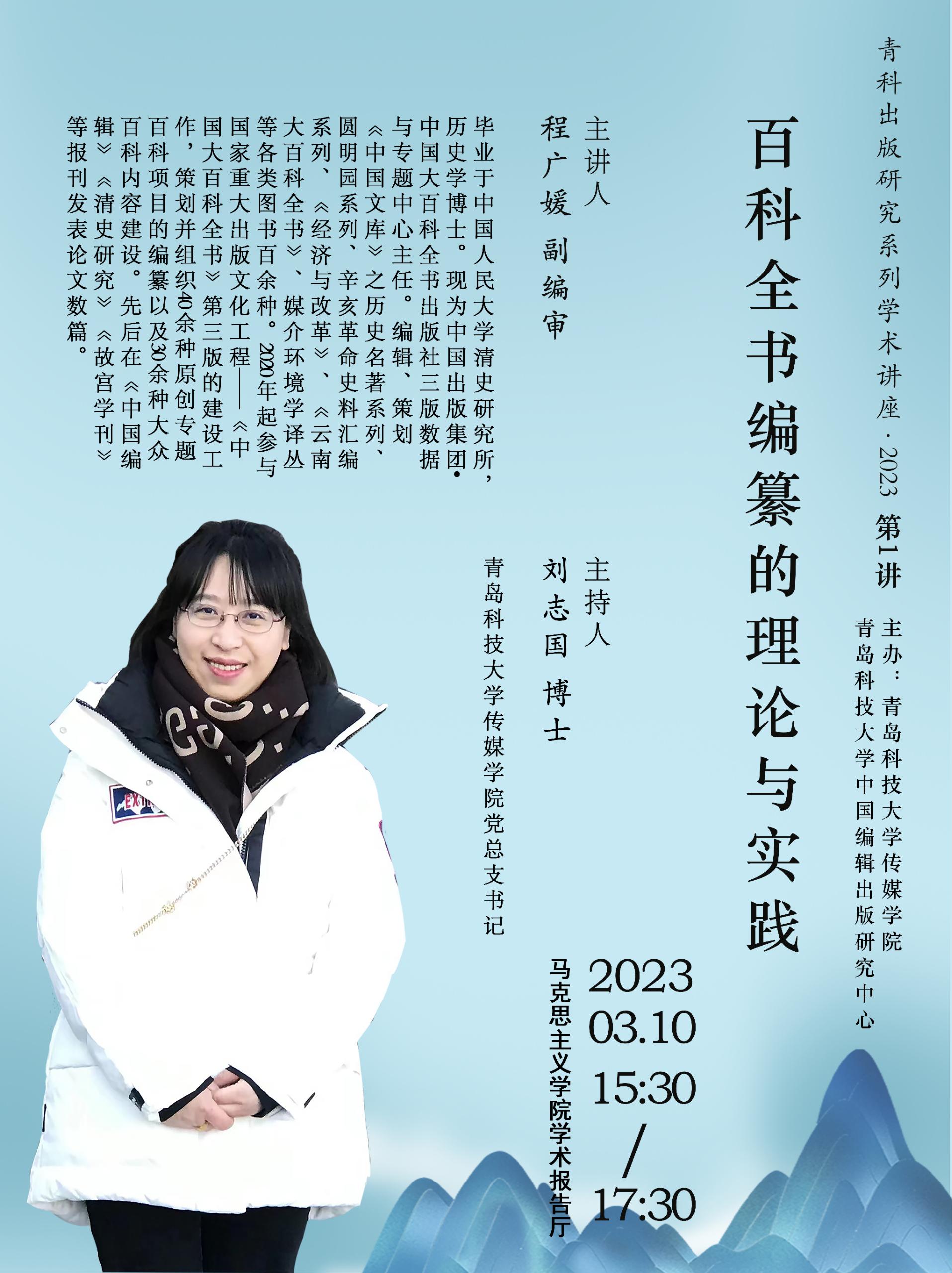 3月10日下午,beat365亚洲体育官方网站在马克思主义公司学术报告厅举办百科全书的编纂理论与实践主题讲座。此次讲座是公司出版研究系列学术讲座2023年第一讲,由中国出版集团中国大百科全书出版社三版数据与专题中心主任程广媛主讲。