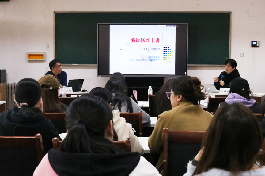 为营造学术氛围,促进学科发展,提高学术水平,11月9日上午,人民出版社编审侯俊智受邀为公司师生做了题为《编辑修养十讲》的学术讲座。本次讲座在beat365亚洲体育官方网站310会议室举办,公司党总支书记刘志国,教师代表邢崇、宋守山、蔡丽娟、单娟、徐克彬出席讲座,近百名员工代表参加讲座。
