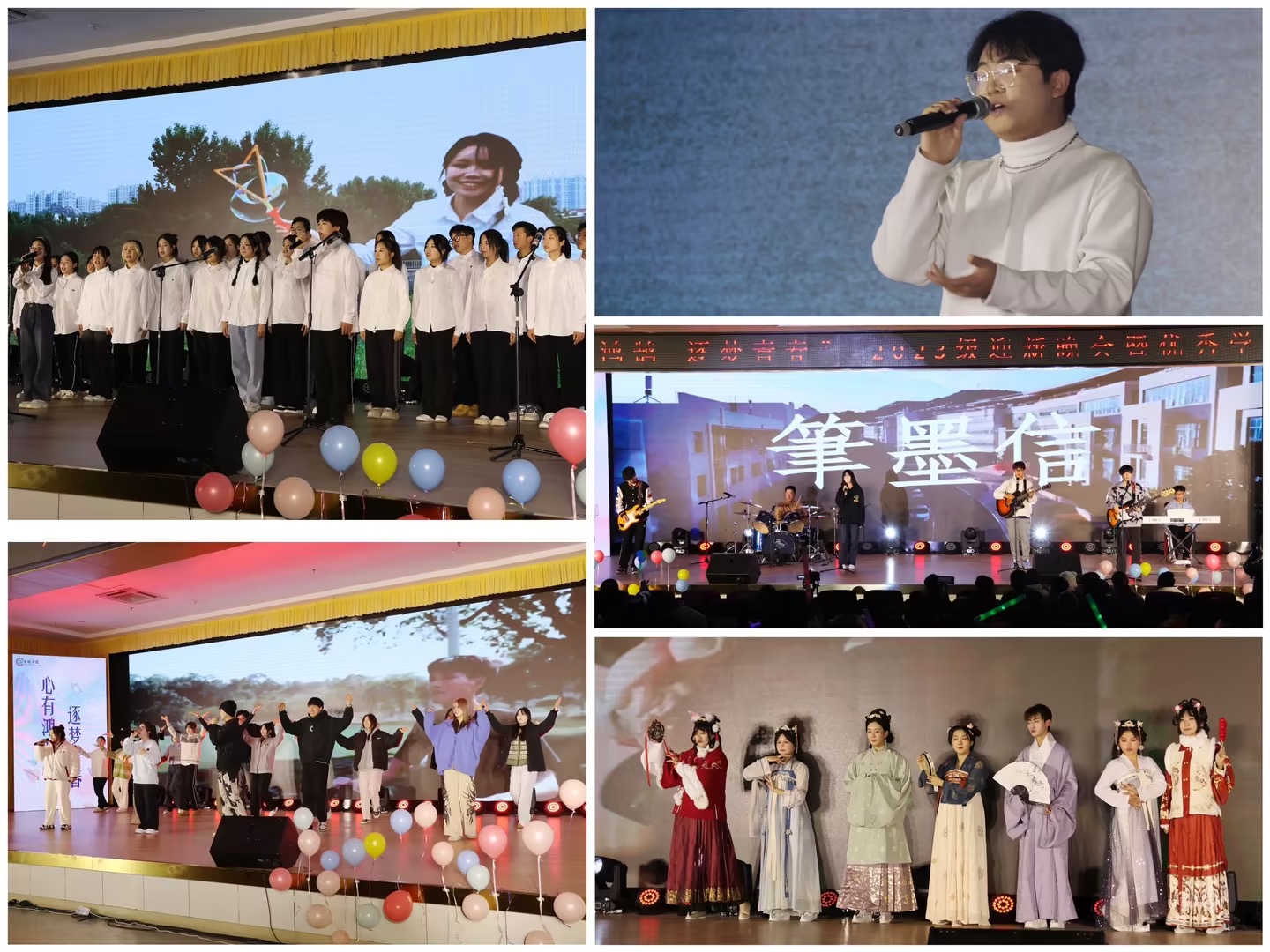 李嘉宁等同学带来歌曲《春风十里》,在歌声带动下,如柔和春风拂过十里林地,如四月小雨湿润空气,治愈观众心灵;来自汉服社的走秀《春日宴》,不仅展示出汉服之美,更诠释了中华千年所流传的服饰文化;古典舞与古筝共同演绎《山鬼》,展开了一幅少女迎神的画面,观众们仿佛身临其境;张嘉轶演唱歌曲《光亮》,歌声铿锵有力,诉说着不论是非、都要拼尽全力、迎着光照耀的地方奔跑;beat365亚洲体育官方网站合唱团带来的《萱草花》演唱唱响了传媒学子的爱与祝愿,也唱响了青春的激情。