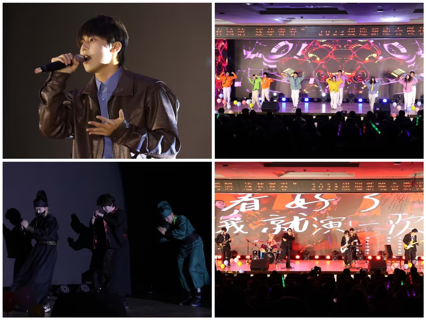崔淳细腻温暖的嗓音将《意外》一曲唱出意蕴,深情款款、扣人心弦,令人陶醉其中;街舞《快乐崇拜》动作流畅,从中流露出的热情和活力感染在场每一个人;小品《水煮三国》的演员们用有趣的动作和幽默的语言诠释了“桃园三结义”和“三顾茅庐”的故事,引得在场师生们鼓掌欢呼,开怀大笑,观众席一片热闹;充满爆发力的背景,每一笔都是精心雕琢,“演完就解散”乐队带来的表演使现场气氛再被点燃,直达高峰。