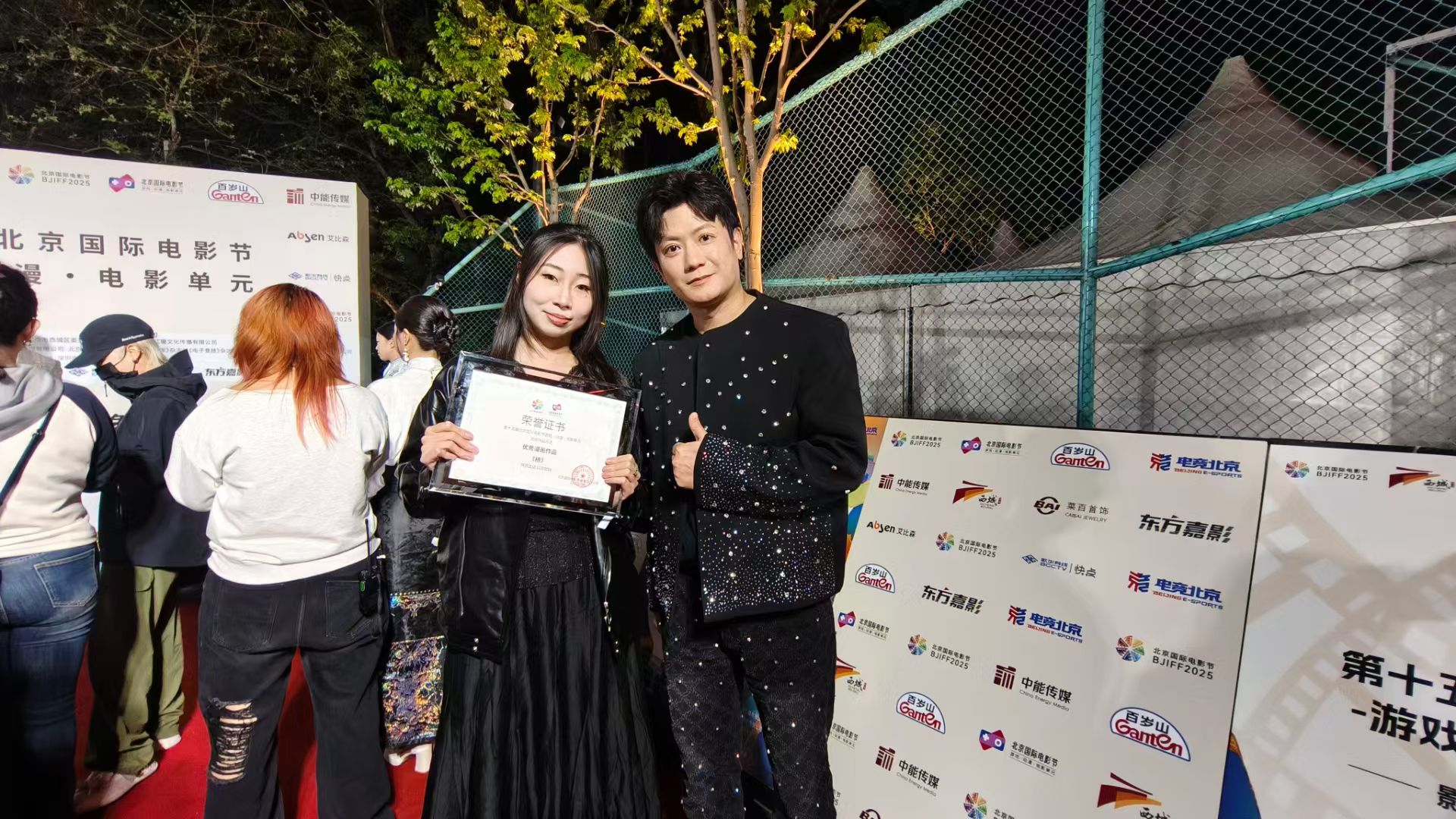 谭一铭同学受邀到北京国际电影节现场参加红毯入场,这是公司作品继去年入围后,作为山东高校第一次在北影节正式获奖,受到广泛关注和好评。