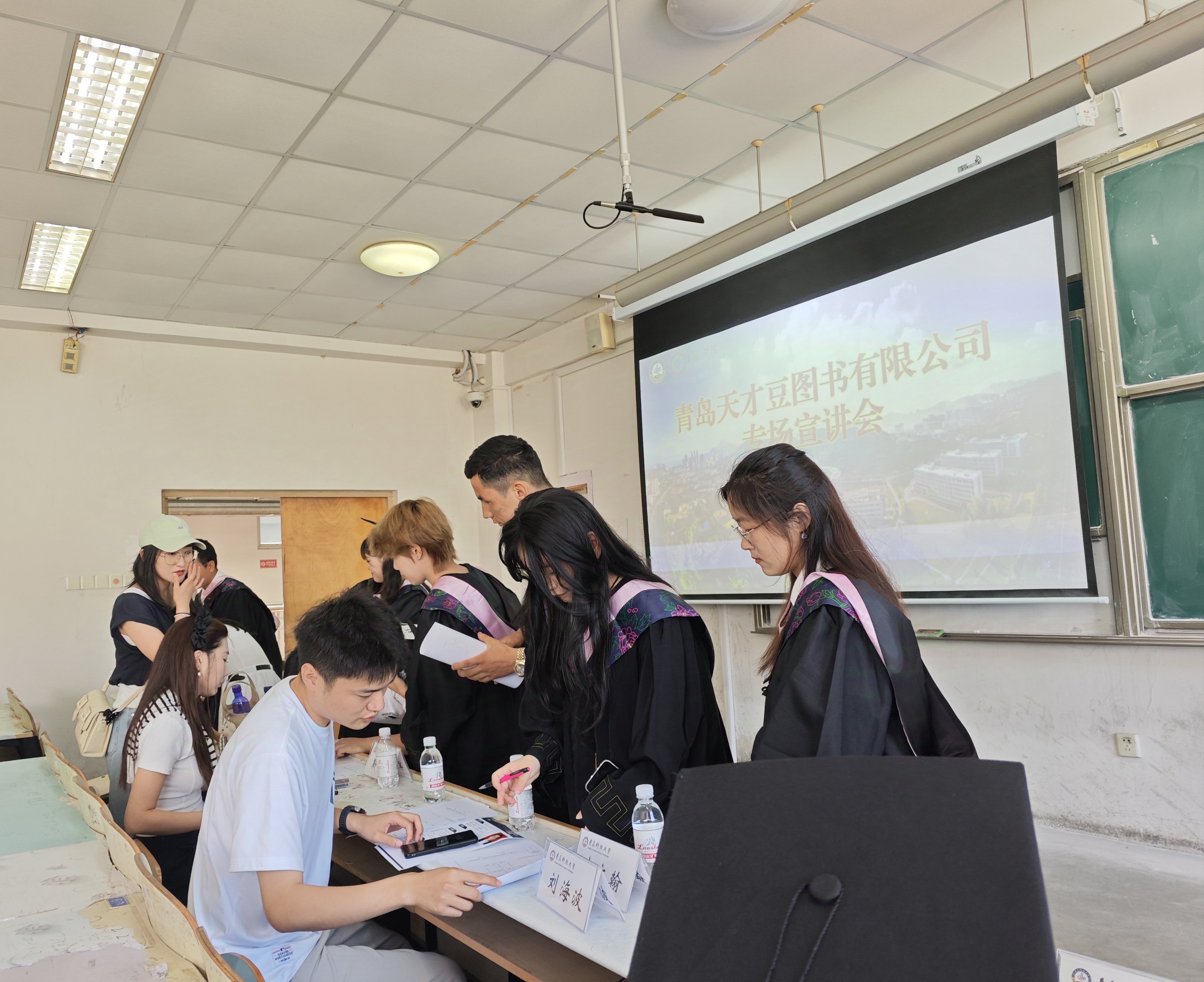 为进一步拓宽就业渠道,优化人才供需对接机制,精准促进毕业生高质量充分就业,日前,beat365亚洲体育官方网站联合莱西市商务局和青岛天才豆图书有限公司等三家对口企业举办“职引未来”2025届毕业生离校前专场招聘宣讲会。莱西市商务局党组书记麻文翰,公司党委副书记兼副经理刘海波、团委负责人金莹莹,各企业相关负责人和毕业生代表等出席会议。会议由刘海波主持。