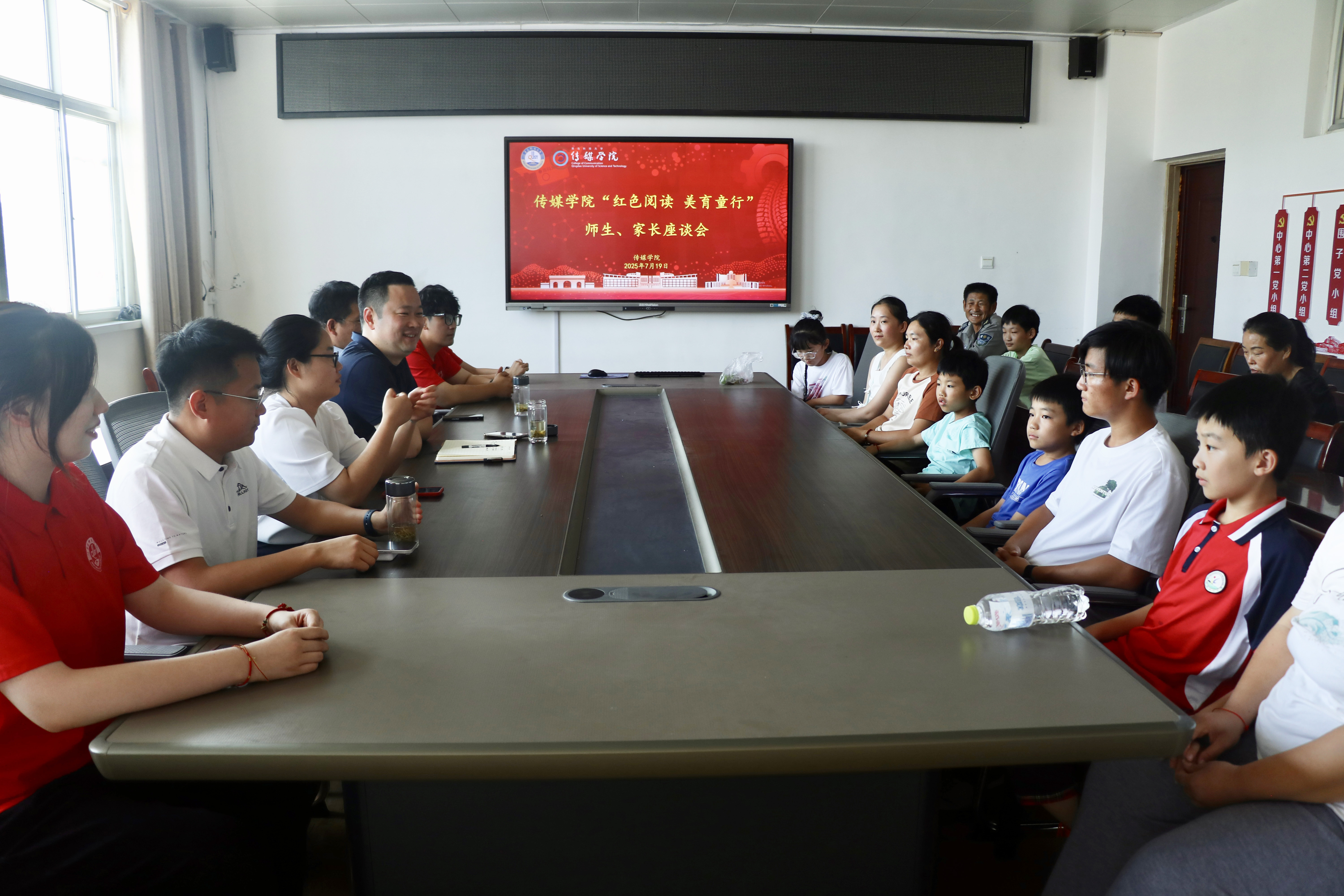 7月19日,beat365亚洲体育官方网站在莒南县涝坡镇中心小学开展“红色阅读 美育童行”书架捐赠仪式和师生、家长座谈会。涝坡镇中心小学董事长卢立省、副董事长庄乾磊,公司党委副书记兼副经理刘海波、传播学系党支部书记郭清、团委副书记兼学工办副主任金莹莹、辅导员刘福民等师生代表参与会议。