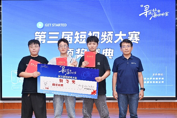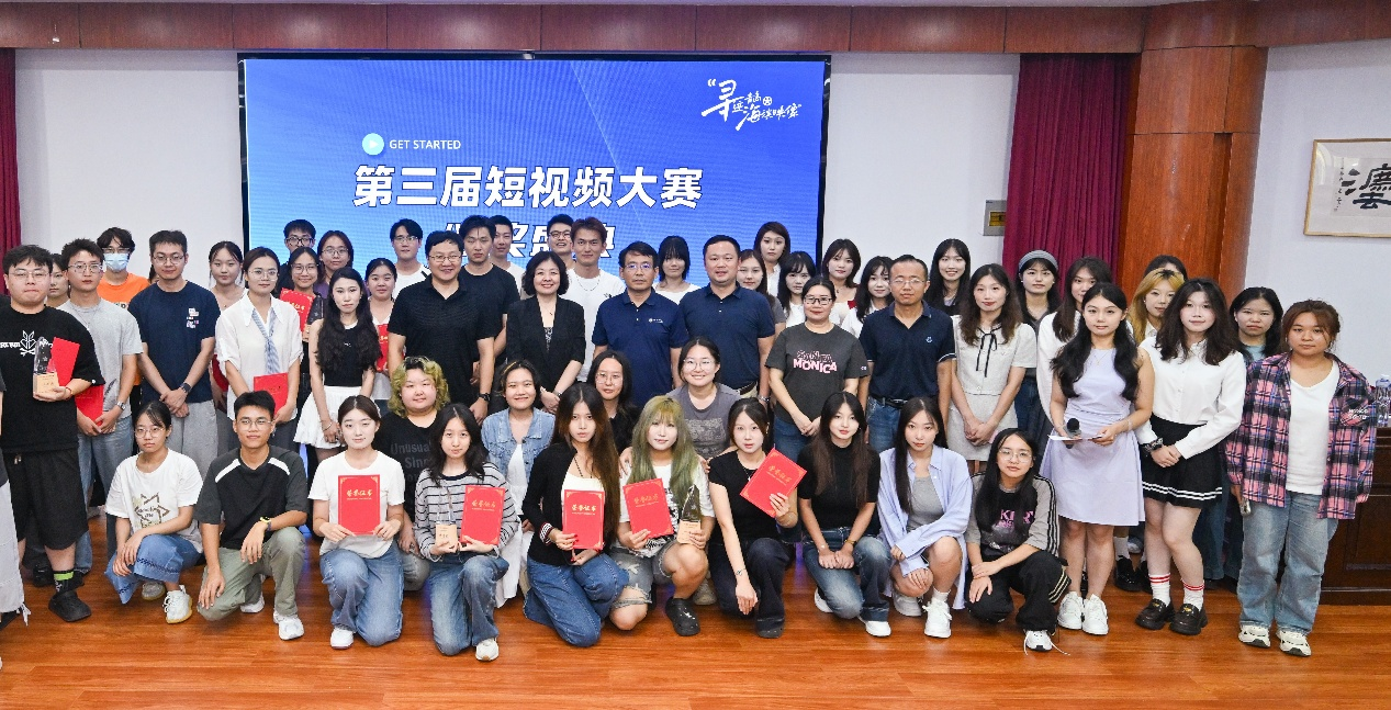 9月16日下午,由beat365亚洲体育官方网站、青岛海滨食品股份有限公司共同主办的第三届“寻迹青岛·海滨映像”短视频大赛颁奖典礼顺利召开,beat365亚洲体育官方网站公司党委书记孙洪广、副经理(主持工作)石晨旭、党委副书记兼副经理刘海波、广告与影视系主任乔洁琼,以及青岛海滨食品股份有限公司总经理李园等出席颁奖典礼并为获奖同学们颁奖。