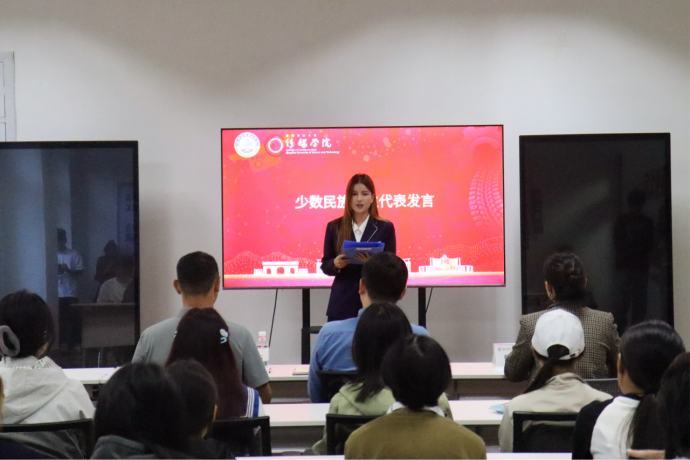 在交流分享环节,2023级本科生阿依西古·努艾力、苏比努尔·塔依尔、玉素甫江·吾麦尔三位少数民族员工代表依次发言,结合各自成长经历分享了学习实践心得。他们建议学弟学妹们要勇于走出舒适区,积极参与社会实践和支教活动,在服务奉献中拓宽视野;要勤于探索学习方法,通过聆听讲座、交流研讨明确发展方向,让成长路径更加清晰;还要敢于面对挑战,在独立生活中培养坚韧品格和协作精神。他们表示,将珍惜大学时光,练就过硬本领,未来为建设家乡、服务社会贡献青春力量。