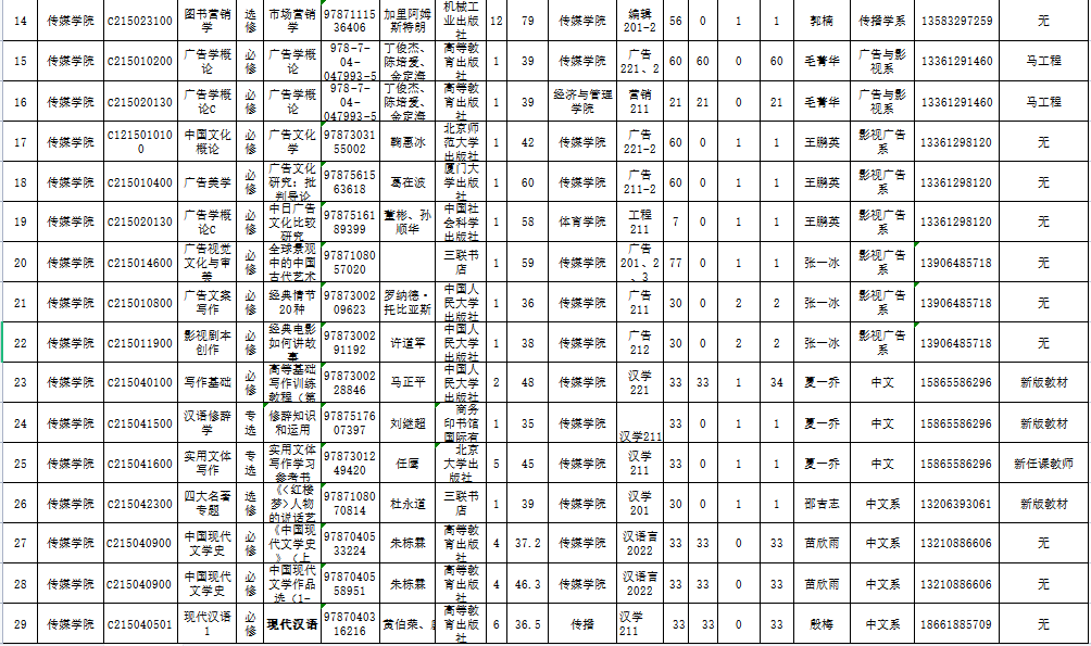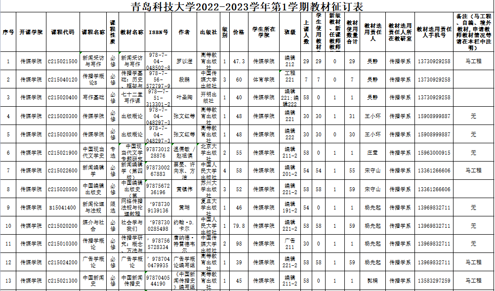beat365亚洲体育官方网站2022-2023学年第1学期教材征订表