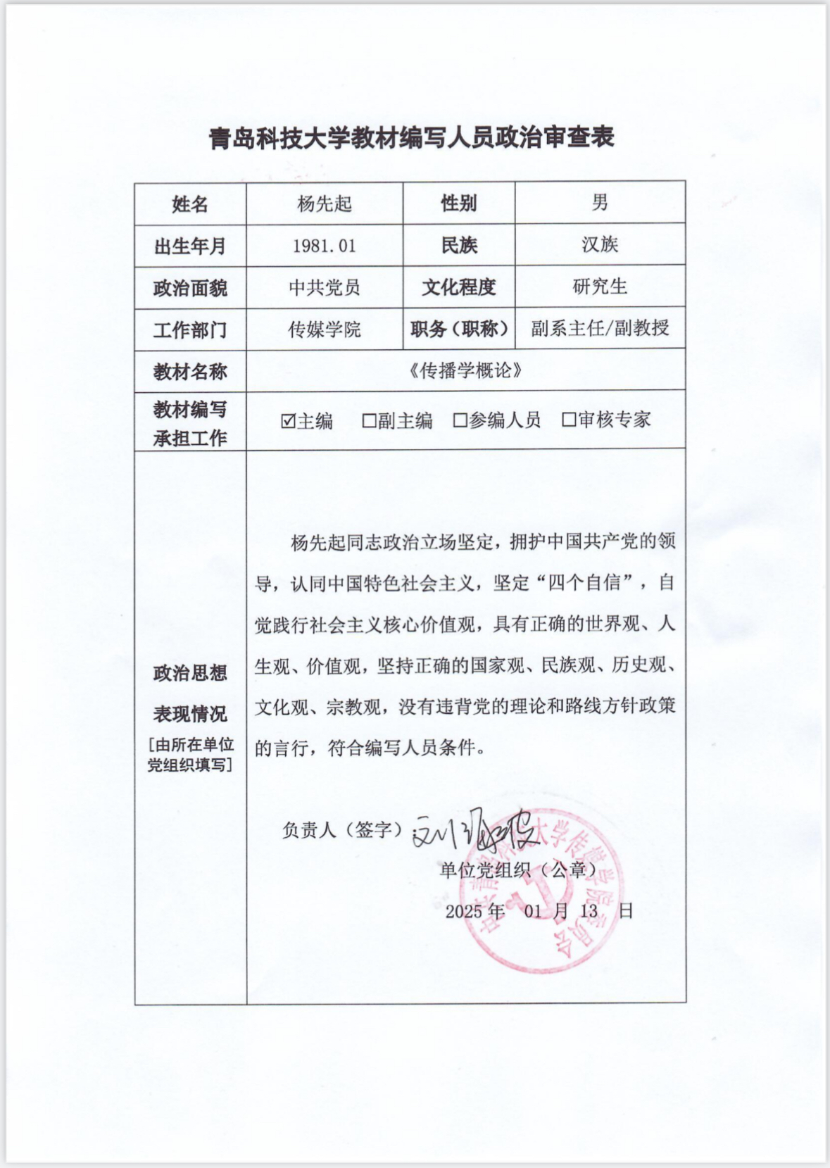 经beat365亚洲体育官方网站公司党委会审核同意,对教材编写人员葛卉、杨先起、单娟政审情况予以公示,公示期为5天(2025年1月16日-20日),如有异议,请在公示期内向beat365亚洲体育官方网站教学办反映。