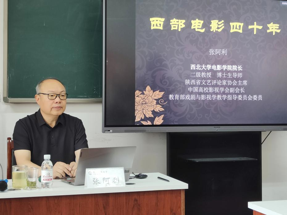 西北大学的张阿利教授为传媒学子带来“中国西部电影四十年”的主题讲座,张老师的学术分享脉络清晰、内容充实,他从西部电影发展史为切入点,概述了西部电影理论的提出与争鸣过程,兼论西部影视的美学追求与文化特征。借以表明新时代西部电影发展的多个维度。特别指出西部电影与中国第四代、第五代导演创作之间的渊源,从而明晰其在中国电影史上的重要地位。张阿利教授表示,在面对新时期的媒介转译挑战中,青年电影工作者、青春影像要大胆尝试,将类型创作与地域背景相结合,探索诗性影像新形态。更要重视“现代性”、“人民性”等问题的思考和表达,从而创造出具有浓郁民族性、地域性的新时代西部电影。