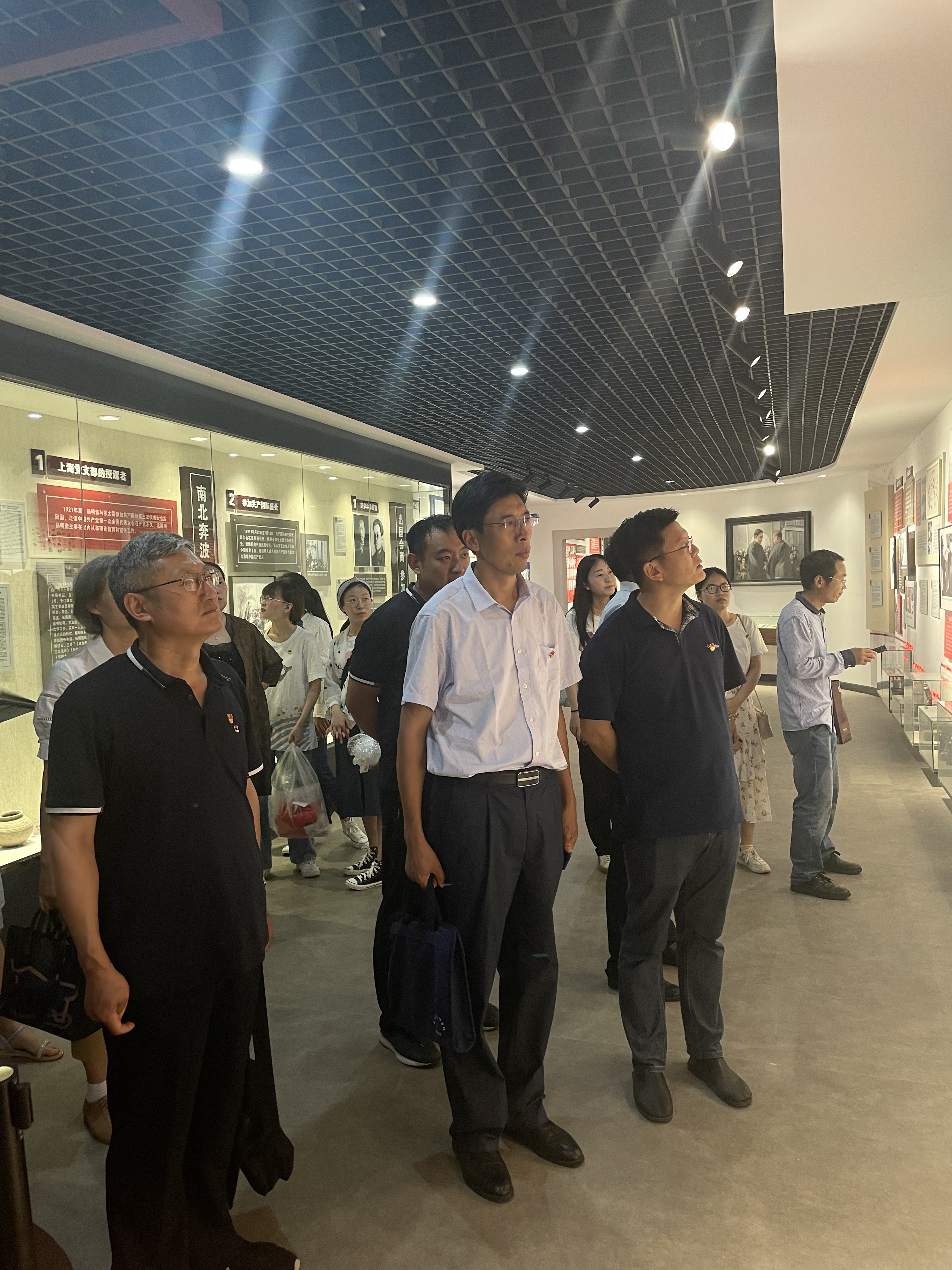 党员们认真聆听讲解员的介绍,依次参观“不忘初心、弘扬精神、锤炼党性、争当表率”等主题单元。 在西柏坡会议室,党员师生们高唱《没有共产党就没有新中国》。