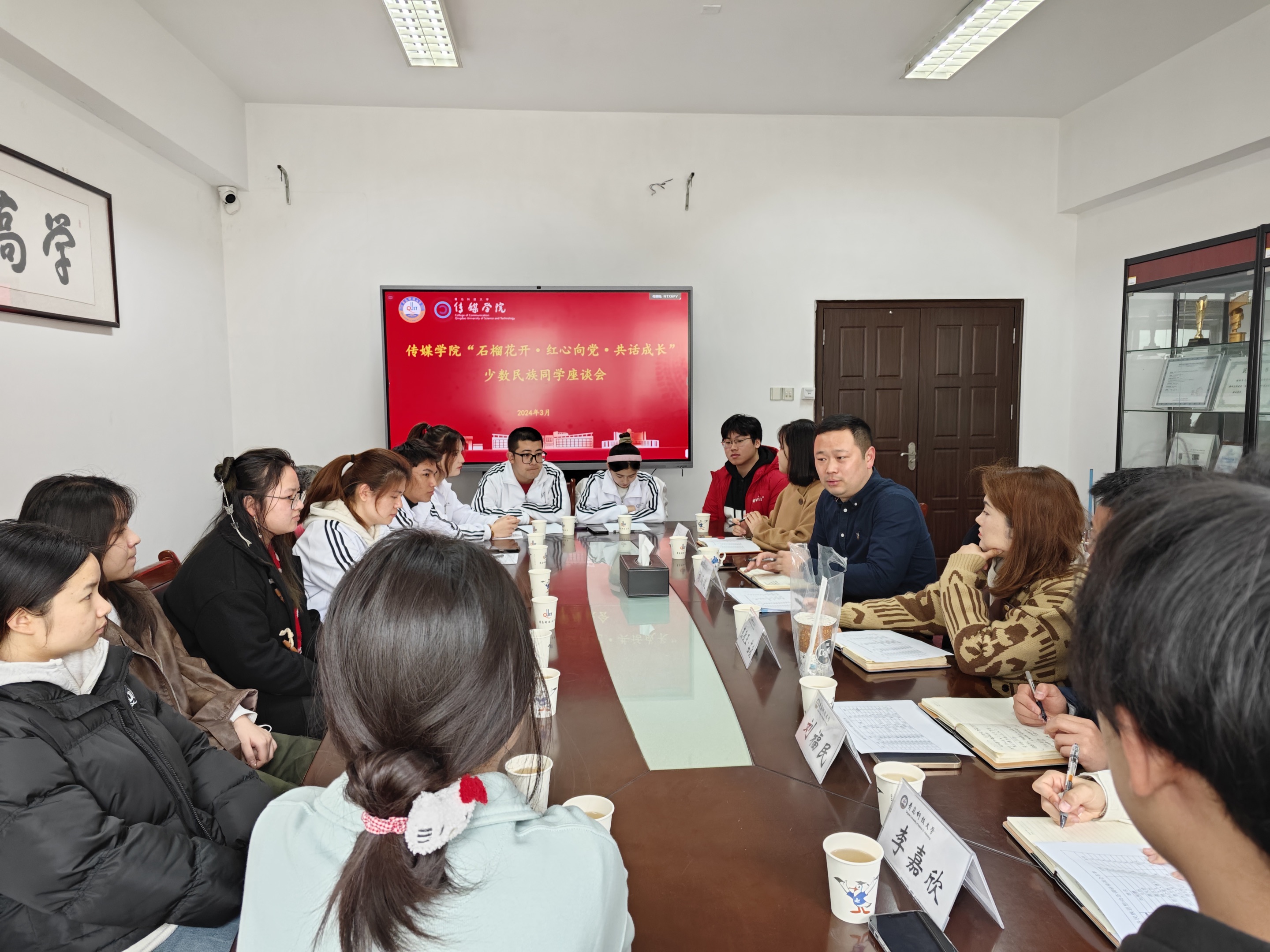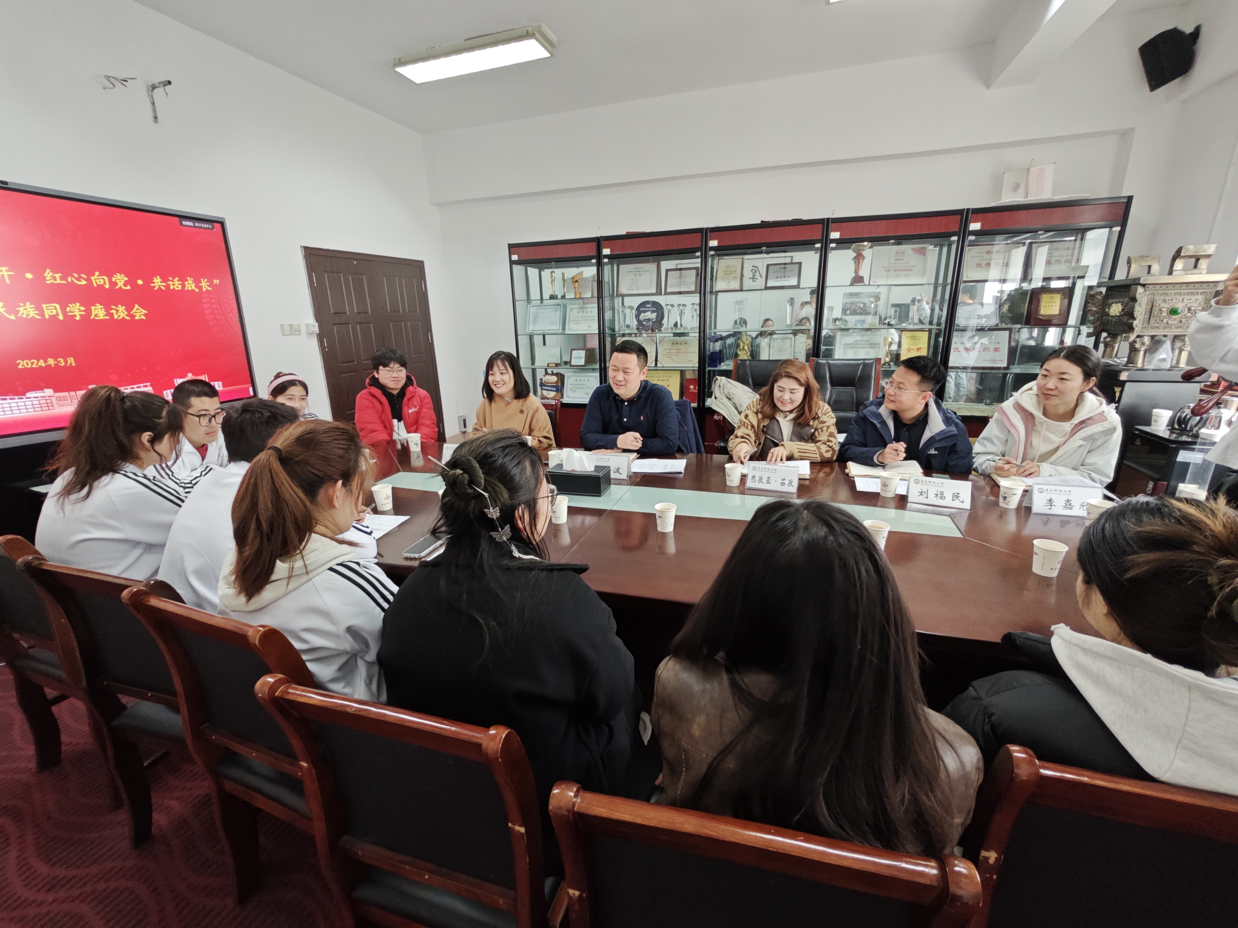 为铸牢中华民族共同体意识,深入了解少数民族员工在校思想、学习和生活等方面情况,3月27日,beat365亚洲体育官方网站在315会议室举行“石榴花开·同心向党·共同成长”少数民族员工座谈会。公司党委副书记兼副经理刘海波,公司少数民族员工专职辅导员热孜亚·茹孜,各年级辅导员及各民族员工代表参加座谈。会议由辅导员李嘉欣老师主持。
