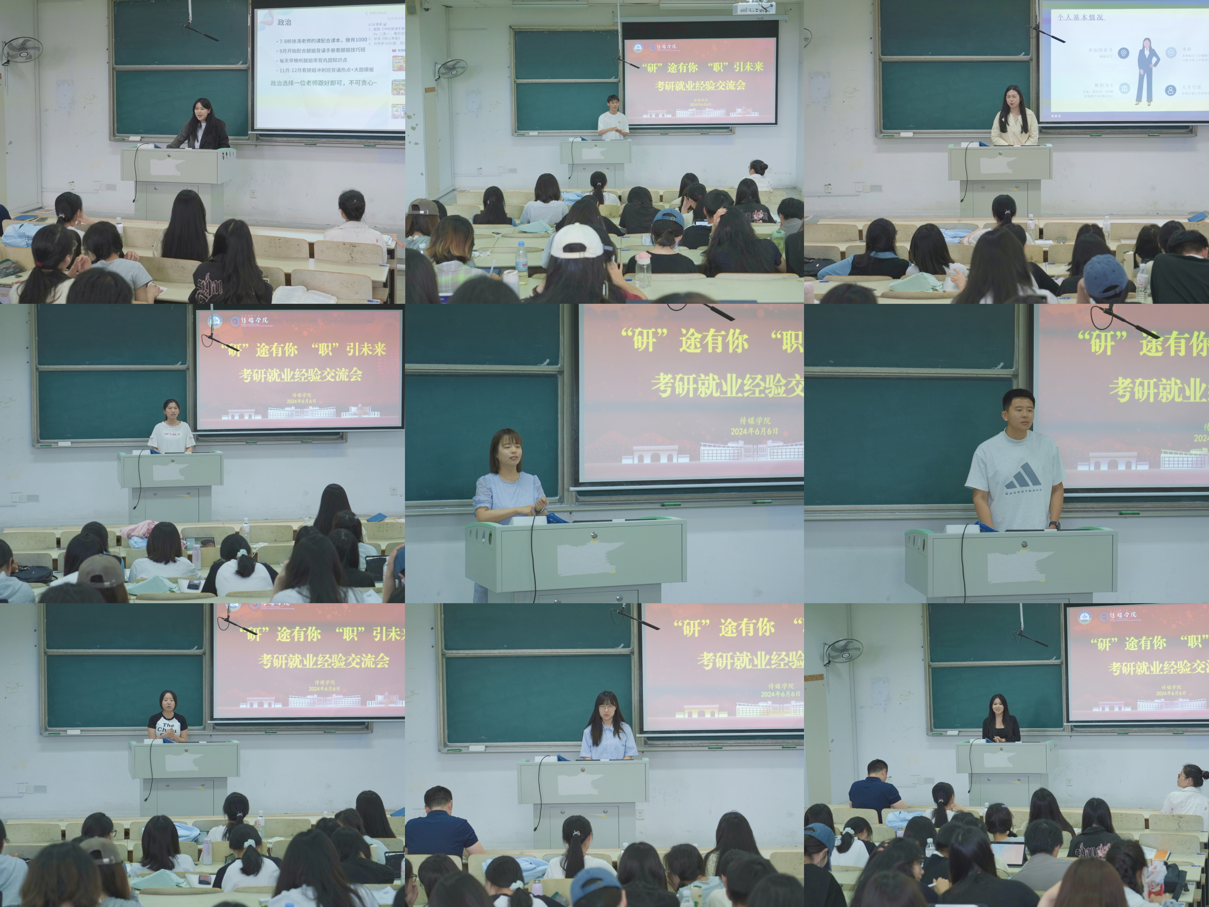 会上,成功考研的优秀毕业生代表结合自身备考经历,围绕考研形势、备考择校、时间管理、复习规划、心态调整等方面详细分享了备考经验,助力同学们明确方向,科学备考。成功入职的高质量就业代表结合自身求职体验,围绕当前就业形势、职业选择、简历制作、面试技巧、求职安全等方面,鼓励同学们尽早确定目标,积极付诸行动。交流答疑环节,各专业同学们积极互动、深入交流,纷纷表示,本次分享会不仅学到了实用的就业升学技巧,还深入了解考研、就业形势,明确了未来职业发展方向。