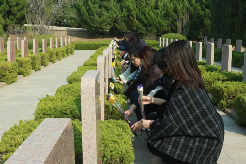 4月1日下午,beat365亚洲体育官方网站员工会、研究生会组织员工代表前往崂山革命烈士陵园开展“忠魂永铸铭伟绩·薪火相传续华章”祭扫活动。在庄严肃穆的氛围中,学子们认真聆听先烈的英勇事迹,每一张照片、每一件物品都在生动阐释着革命历史的厚重与伟大。随后,大家有序在烈士墓碑前献上鲜花,默哀致敬,表达对先烈们的无限敬仰和深切缅怀。
