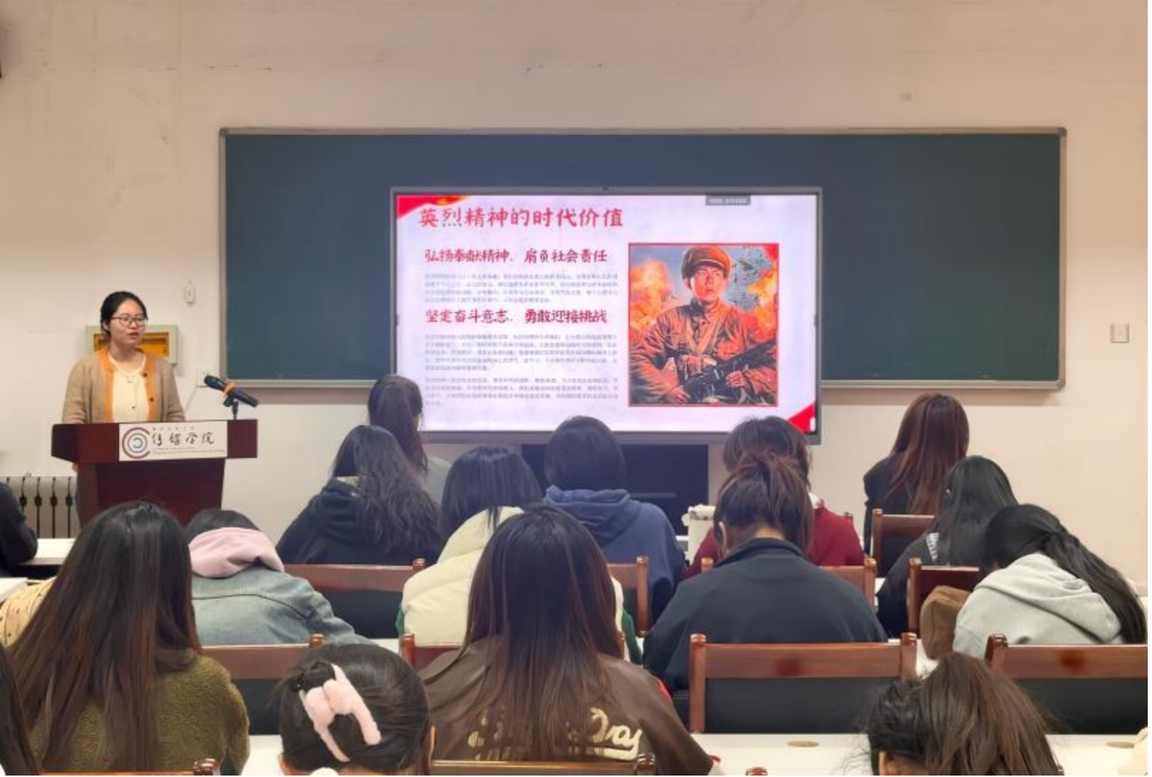 4月2日晚,beat365亚洲体育官方网站团委副书记兼学工办副主任金莹莹老师面向团员代表组织开展以“祭英魂,铭记丹心志”为主题的团课活动。同学们在一个个鲜活的英雄事迹中,深刻体会到了英烈精神的时代价值,汲取了前进的智慧与力量。