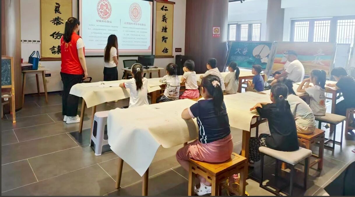 团队首站来到国学馆,成员化身文化“引路人”。在智能书法体验区,志愿者耐心指导孩子书写,传统书法与现代科技碰撞,让古老文字 “活” 起来;书架间,成员整理书籍,向读者推介国学经典,让知识触手可及。大家积极践行 “推动国学传承与实践结合,以青春力量赋能文化传播” 宗旨,挖掘国学中的红色价值,用行动诠释文化担当。
