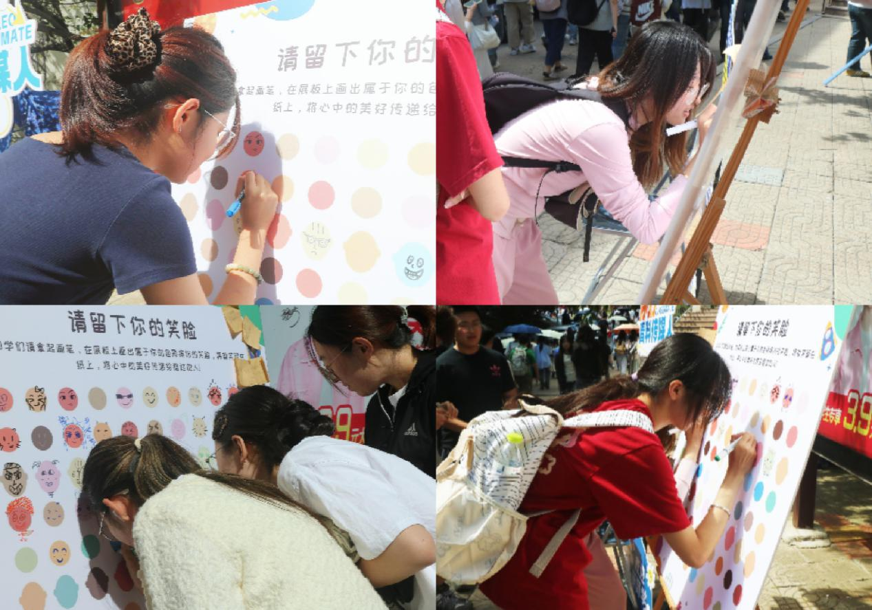 9月18日,在公司院平台开展“定格温暖,传递治愈”主题心理互动活动。同学们手持彩笔,在卡片上勾勒出各具特色的笑脸——有的灵动活泼,有的温柔治愈,整面墙的笑脸与寄语汇成一股暖流,为来往的师生带来深深的心灵慰藉。