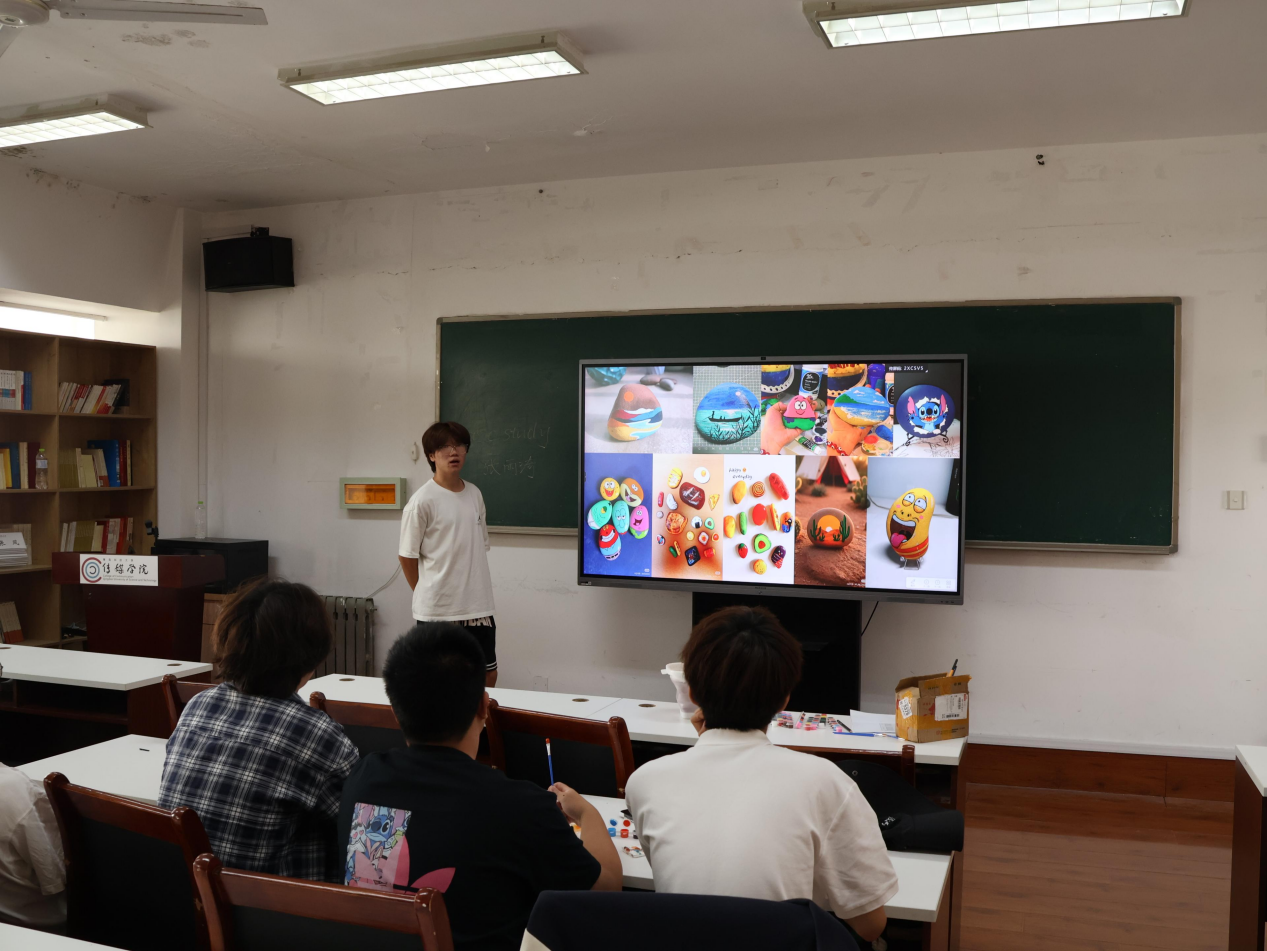 9月20日,在公司310会议室迎来“石间绘心,艺语疗愈”艺术疗愈体验活动。在舒缓的音乐中,同学们拿起画笔,在一个个鹅卵石上描绘出各式各样的图案,并进行交流分享。这不仅为同学们提供了一个独特的自我表达渠道,更完成了一次深刻的内在探索与情感联结。