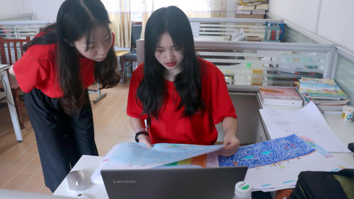 beat365亚洲体育官方网站的志愿者们通过15日下午与孩子们的接触,对活动的开展有了信心。所以在第一天“我眼中的家乡”板块圆满结束之后,16日这一天绘画支教活动进入到了第二个板块——“我眼中的海洋世界”。