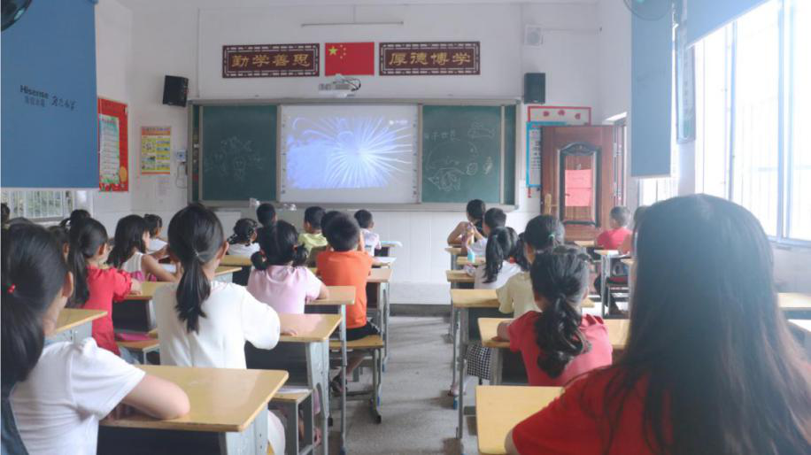 课堂上,志愿者带着小朋友们观看了视频。随着视频的播放,小朋友也激动地指出了自己认识的海洋生物。但也还有一些不认识的美丽生物,让小朋友们感叹的神情从一双双眼睛里流露出来。