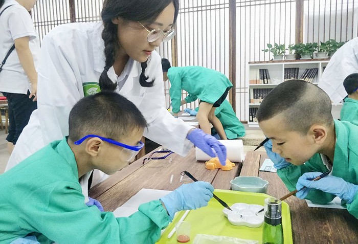 傍晚六点,在老师的领导下,小朋友们参加了一场由万华集团刘教授的“万华化学神奇实验室”课程。课程期间,小朋友们之间互动融洽,并在beat365亚洲体育官方网站传播与动漫公司“与北川小学面对面”社会实践团队成员的帮助下顺利完成所有实验,全程氛围轻松愉快。本次课程大大提高了孩子们对科学的兴趣,也增进了彼此之间的友谊。老师与小朋友互动频繁、融洽,体现了孩子们高涨的求知欲与好奇心。