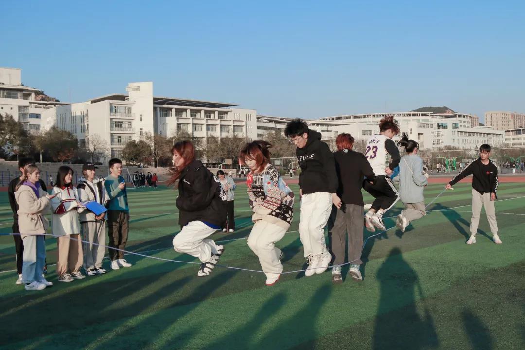 最后是“跳大绳”游戏,大家团结一致,通力合作,不断起跳又落地,拿出了自己的看家本领。广告专业的同学们更是跳出了46个的好成绩,毫无悬念的成为第一名。