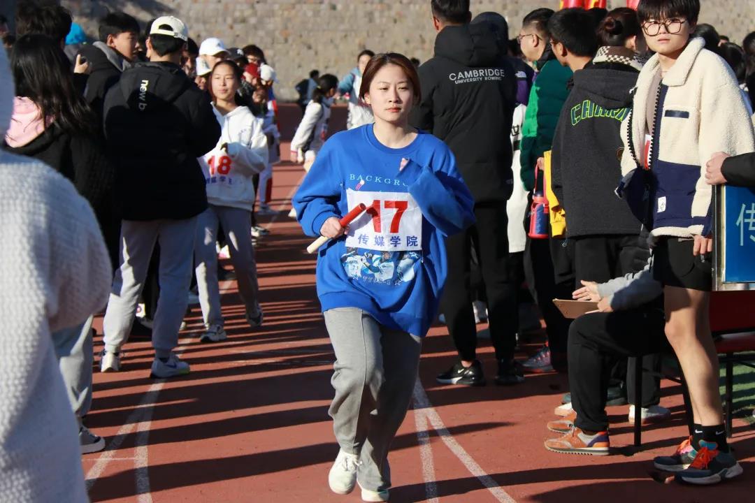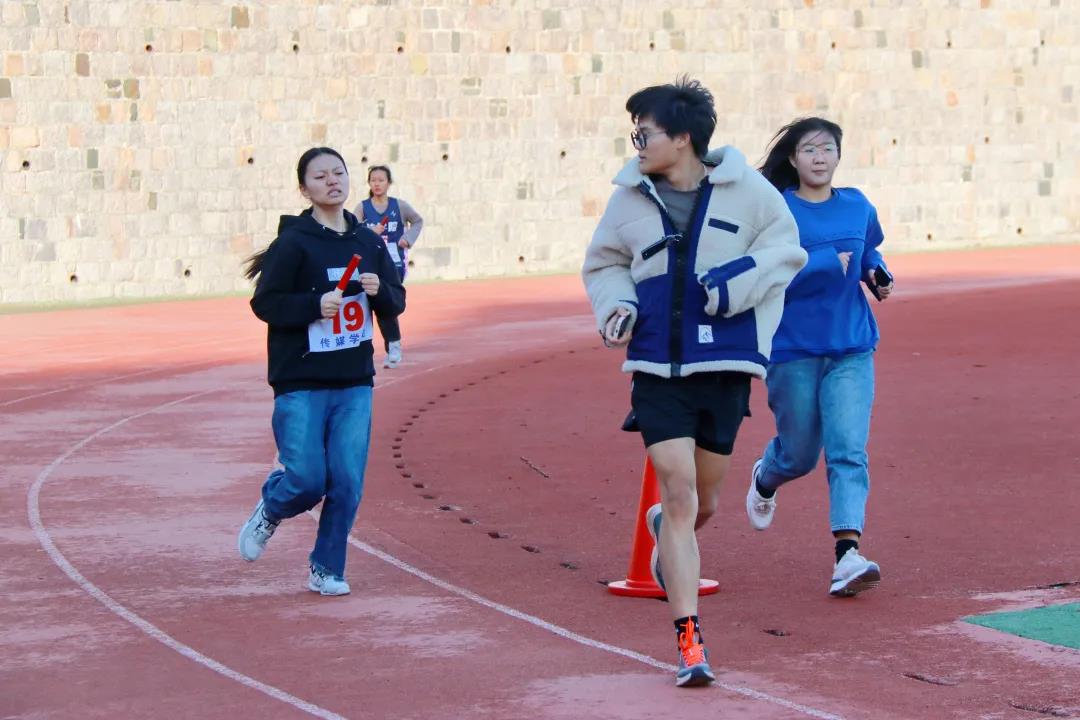 传媒选手不言放弃、坚持始终,展现出传媒学子的坚持不懈和青春活力。他们传递的不只是手中的接力棒,更是团结拼搏与集体荣誉感。在比赛过程中,每个选手都是不可或缺的部分,都是接力赛中重要的一棒。团结一致,坚持努力,这就是我们的传媒学子。