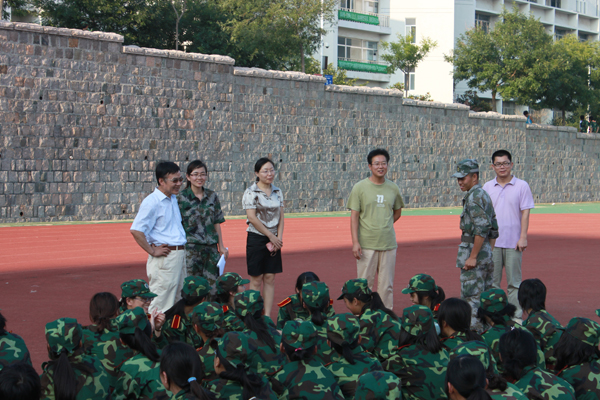 8月31日16:30,传播与动漫公司党总支书记张鸣,常务副经理阎瑜,党总支副书记兼副经理魏琳,分团委书记刘名森一行来到训练场走访2011级新生军营,对在烈日下坚持刻苦训练的新生表示慰问和鼓励。