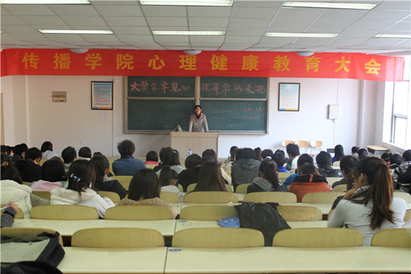 11月8日下午1:30,传播公司心理健康教育大会在弘毅楼B203举行,校员工心理咨询室主任王美丽老师担任大会主讲,分团委书记刘名森担任大会主持。