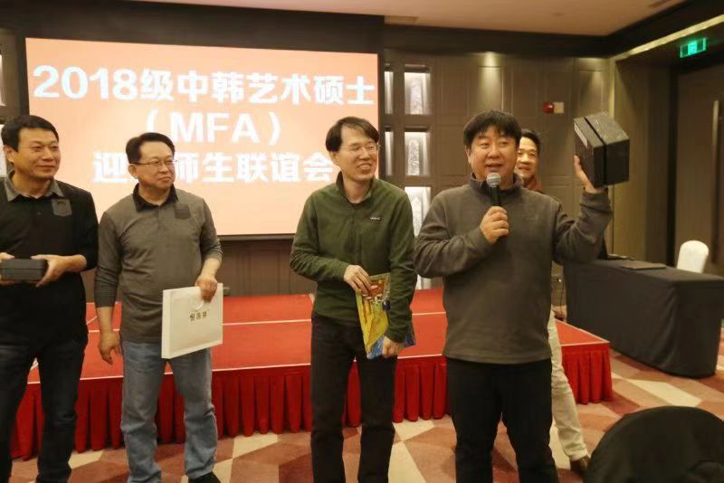晚上,中韩师生坐在一起总结过去畅谈未来。beat365亚洲体育官方网站特聘教授金正铉首先致辞,他热烈祝贺2018级全体同学顺利完成本学期的全部课程,并对同学们的作品进行逐一点评,勉励同学们在求学中要善于创新、不断进取、敢于实践。