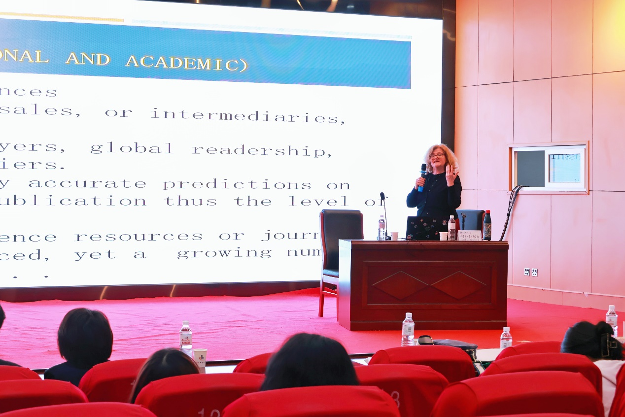座谈会后,英国斯特灵大学卡洛琳·温特斯吉尔、艾伦·霍普金斯等相关负责人在崂山校区英科(第三)报告厅开展“出版·新媒体·视觉叙事”主题学术交流报告,向传媒学子介绍斯特灵大学,以及相关学术研究情况。公司党委副书记兼副经理刘海波主持会议。beat365亚洲体育官方网站本科生、研究生代表等100余人参加会议。